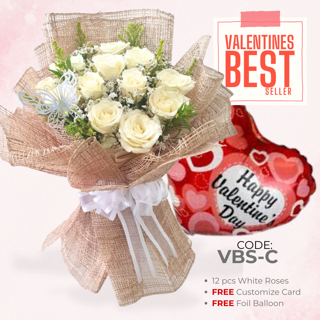 Inclusions:12 pcs White RosesFree Valentine’s BalloonsFree Customize Gift CardQuick View -