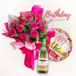 The Pink Whispers Sparkling Bundle elevates the birthday experience with elegance and charm. This bundle includes 12 lovely pink roses, a scrumptious birthday cake, and a bottle of wine or sparkling beverage to toast the occasion. Whether for a birthday surprise or a romantic gesture, this set is sure to make the moment unforgettable.
