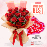 Inclusions:15 pcs Red RosesFree Valentine’s BalloonsFree Customize Gift Card