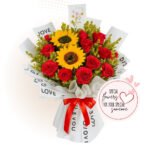 Inclusions:2 pcs Sunflower and a 12 pcs of rosesFree Valentine’s BalloonsFree Customize Gift Card